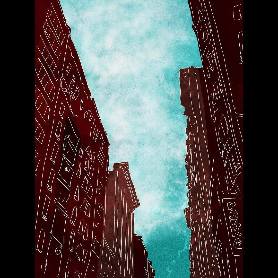 "New York City Canyon" - looked up. I think it was 17th street and 6th Ave. #digitalart #digitaldrawing #nyc #newyorkcity #skyline #sky #buildings #illustration #art #sq #mikebrennanart #clouds #lookup April 2, 2016 April 02, 2016 at 09:23PM