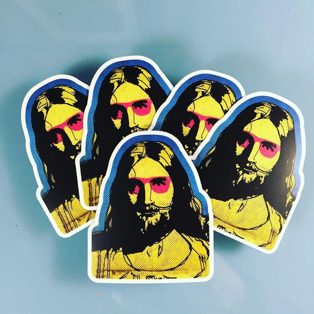 Somebody's got a birthday coming up... Limited edition "Hollywood Jesus" die cut stickers available at my shop $3 a piece. http://ift.tt/1OuDCcA Quality weather resistant vinyl 2.5x3 in. Sticker via @stickermule #Art #Jesus #popart #HollywoodJesus #stickers #diecut #christian #sonofgod #SQ December 1, 2015 December 01, 2015 at 03:14PM