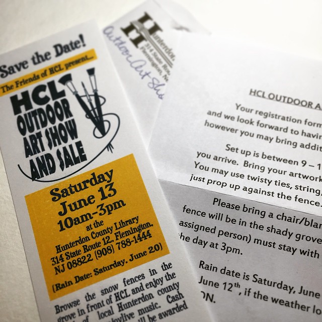 All registered for the Hunterdon Library Outdoor Art Show on Saturday June 13th 10am-3pm. Stop by! #art #show #hunterdon #nj #njarts #artist #flemington #SQ May 22, 2015 May 22, 2015 at 01:55PM