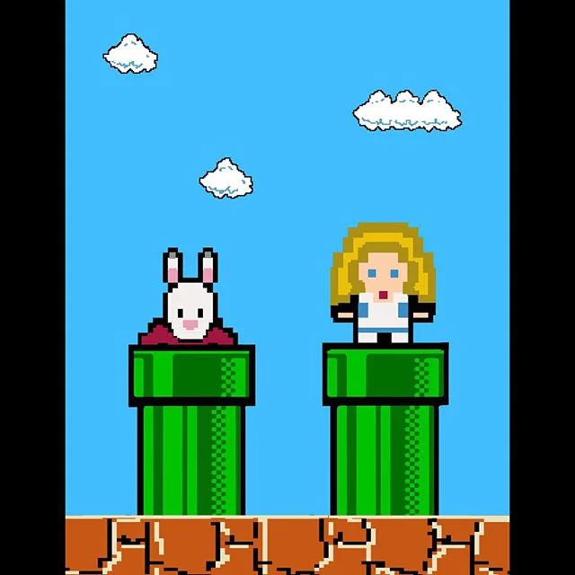 "8 Bit Alice." New design. Down the rabbit hole. #Alice #videogame #mario #rabbit #aliceinwonderland #8bit #art #graphics #design #SQ August 28, 2015 August 28, 2015 at 10:36PM