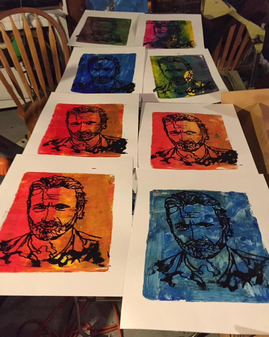 Screen printing Experiments continue. A bunch of #rickgrimes from #thewalkingdead #wip #screenprinting #art #printmaking #SQ September 17, 2015 September 17, 2015 at 08:06PM