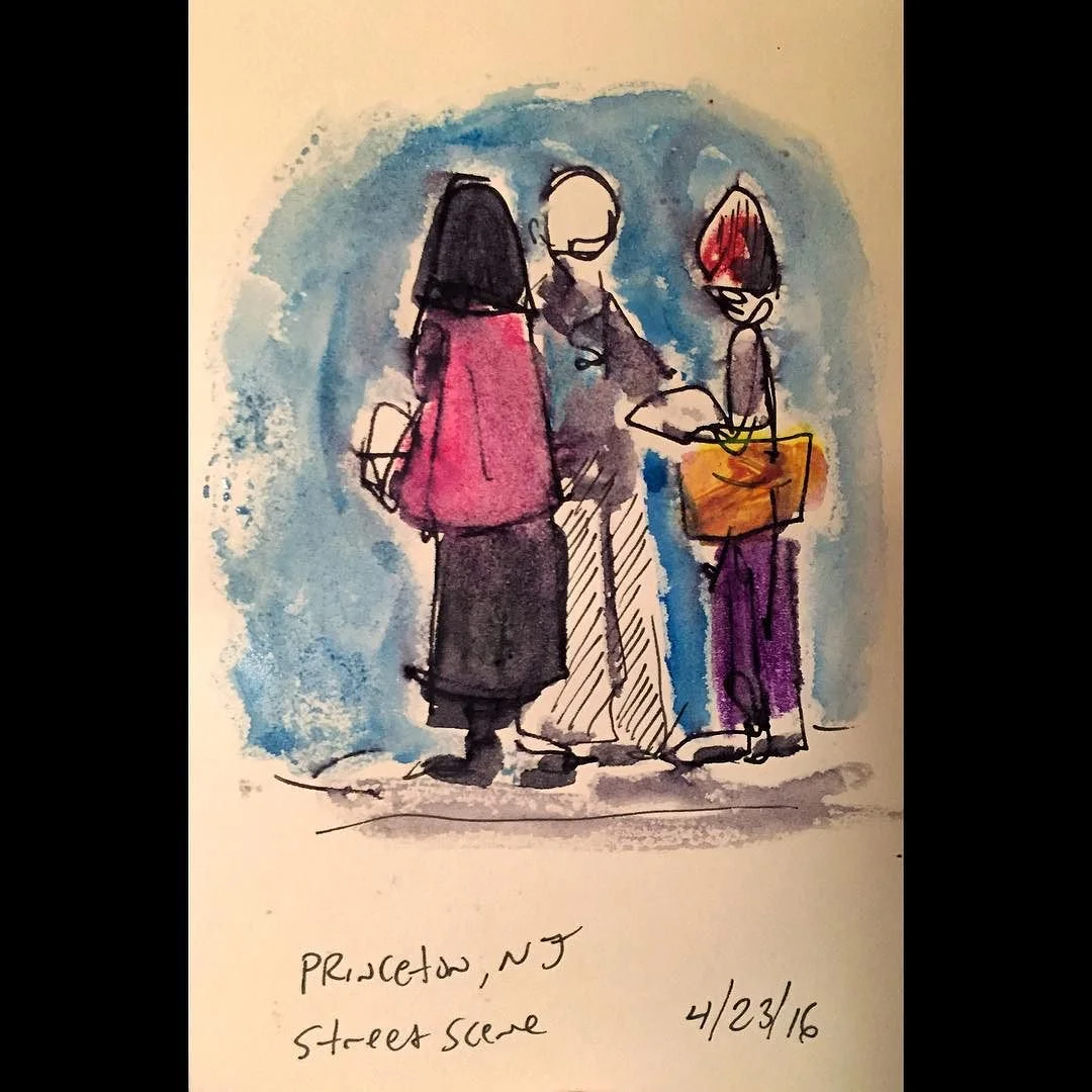 Took my tiny #moleskine sketchbook with me to Princeton today. Only grabbed a couple of 2 minute sketches on the move. People shopping on the street. #sketch #watercolor #ink #sketchbook #princeton #nj #urbansketch #sq #art April 23, 2016 April 23, 2016 at 08:24PM