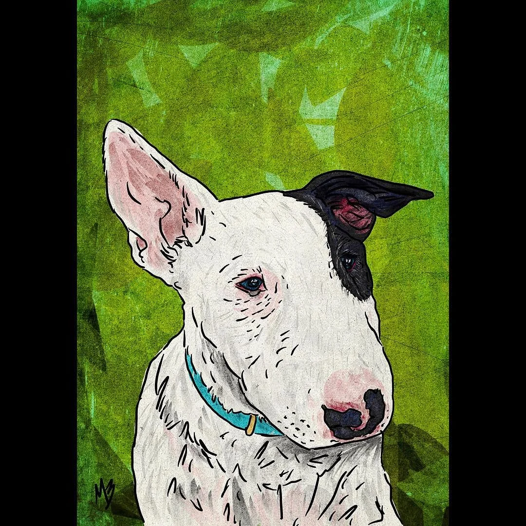 Bull Terrier. You got this Spuds. #30daysofpetportraits #pet #petportrait #bullterrier #dogsofinstagram #bullterriersofinstagram #digitalart #artshow #myart #artwork #workingartist #sq #art_spotlight #mikebrennanart #artsy #instaart #artoftheday January 28, 2016 January 28, 2016 at 08:05PM
