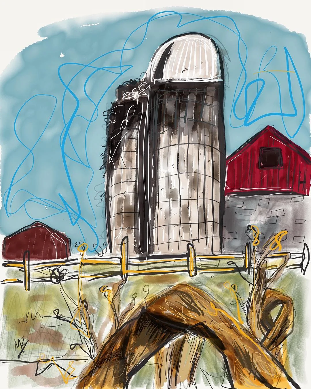 Digital sketch in @fiftythree app from photo taken at the farm today. #art #artist #digitalart #drawing #sketch #farm #silo #sq October 15, 2016 October 15, 2016 at 10:11PM