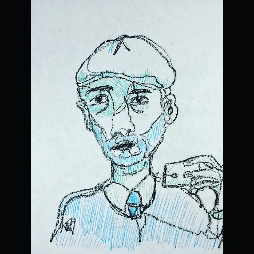 Day 17 in continuous line drawings. China marker and colored pencil. #art #drawing #mixedmedia #continuousline #lineart #man #phone #camera #SQ #hat #originalart November 17, 2015 November 17, 2015 at 07:03PM