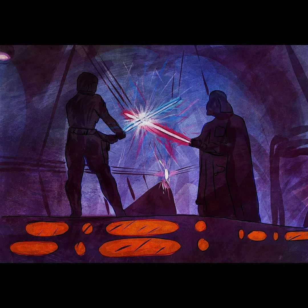 Day 10 of #30DaysofStarWars - lightsaber duel Darth Vader vs Luke Skywalker #art #digitalart #starwars #lightsaber #lukeskywalker #darthvader #duel #theempirestrikesback #SQ #drawing #illustration December 10, 2015 December 10, 2015 at 01:57PM