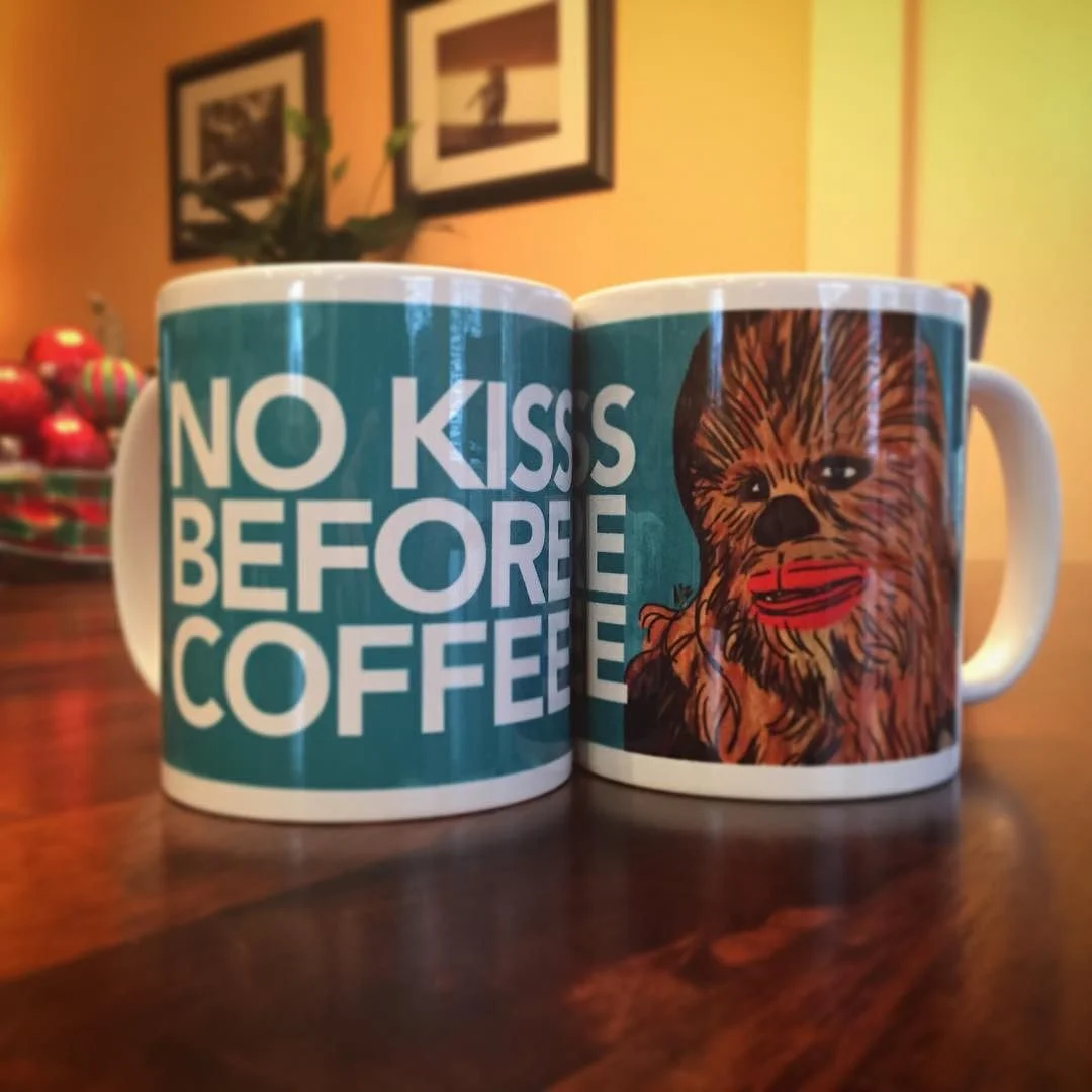Christmas came early. My mugs just got delivered. $15 each. No Kiss Before Coffee. #starwars #coffee #coffeemug #wookie #chewbacca #wookienookie #SQ #shopping #gift December 24, 2015 December 24, 2015 at 11:20AM