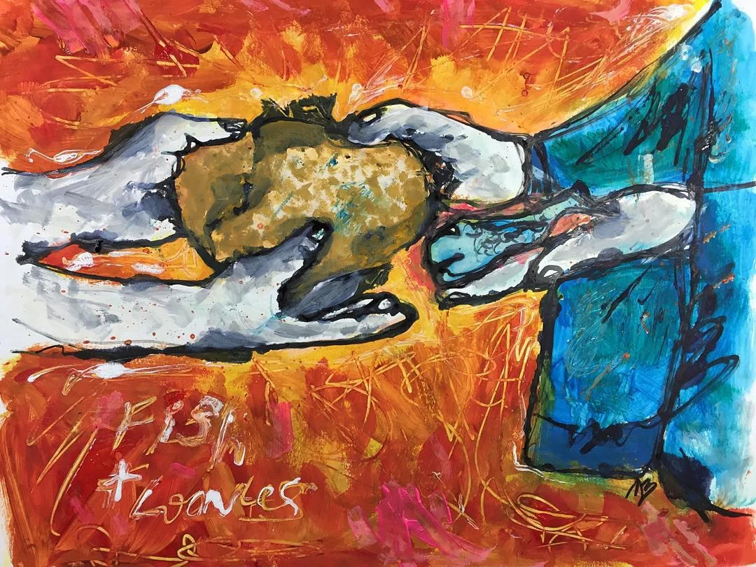 "Fish and Loaves" Day 10 of continuous line drawings. Acrylic marker, India ink, watercolor, and gouache. #art #continuousline #mixedmedia #drawing #painting #fishandloaves #bible #watercolor #ink #SQ ------------------------------------------------------- Sometimes, all I have to offer seems underwhelming. I've been thinking about the story in the Bible where a little boy with 2 fish and 5 loaves, certainly not enough for five thousand, places a November 10, 2015 November 10, 2015 at 08:57PM