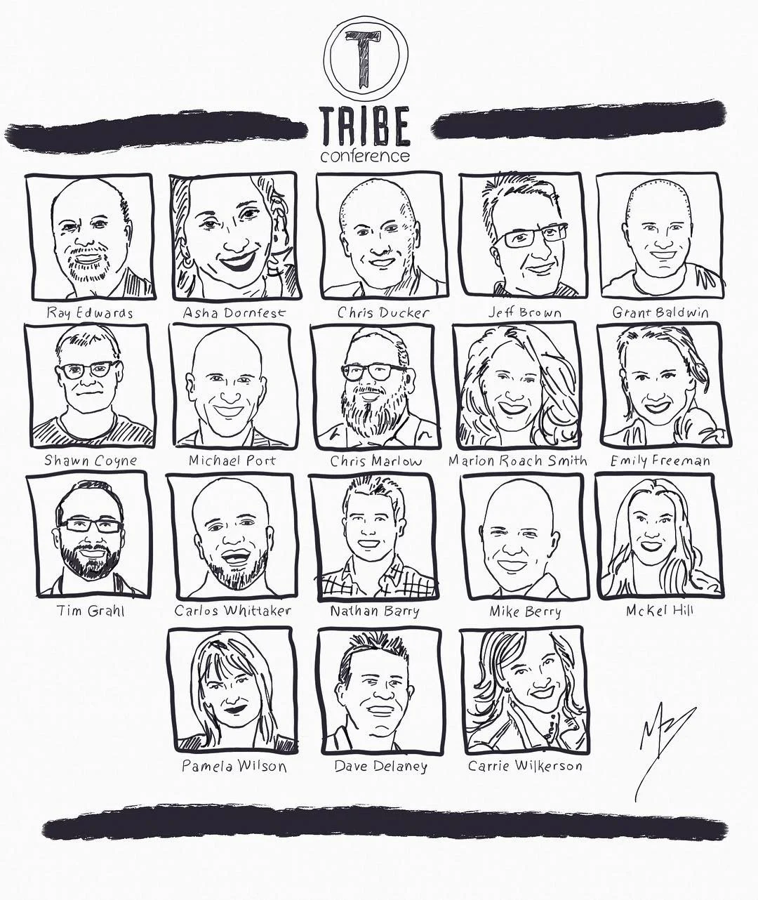 Gearing up for the Tribe conference this weekend in Nashville. Spent some time drawing the speakers tonight, wondering what wisdom I might learn from each. Excited! @Tribeconference @loswhit #Art #digitalart #sketch #tribe #tribeconf #sq #drawing September 13, 2016 September 13, 2016 at 11:32PM