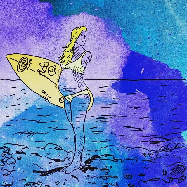 "Surfs Up" gouache and acrylic paint pen on 9 x 12 yupo paper. #art #painting #surf #surfer #surfboard #surfergirl #color #texture #lineart #drawing #water #waves #ocean #SQ