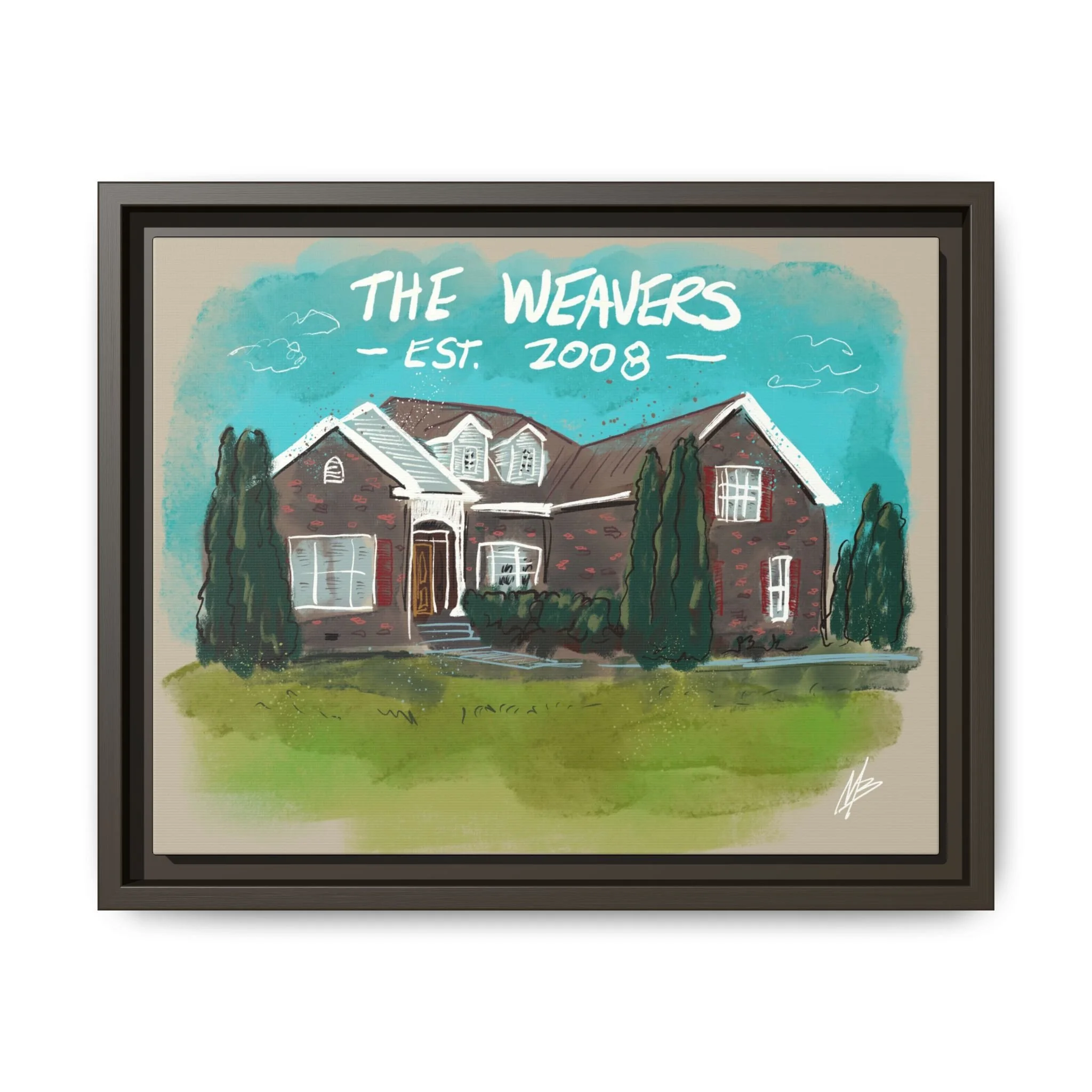 Custom illustrated home portraits created from photos and finished as framed canvas art. A thoughtful closing gift your clients will truly remember.