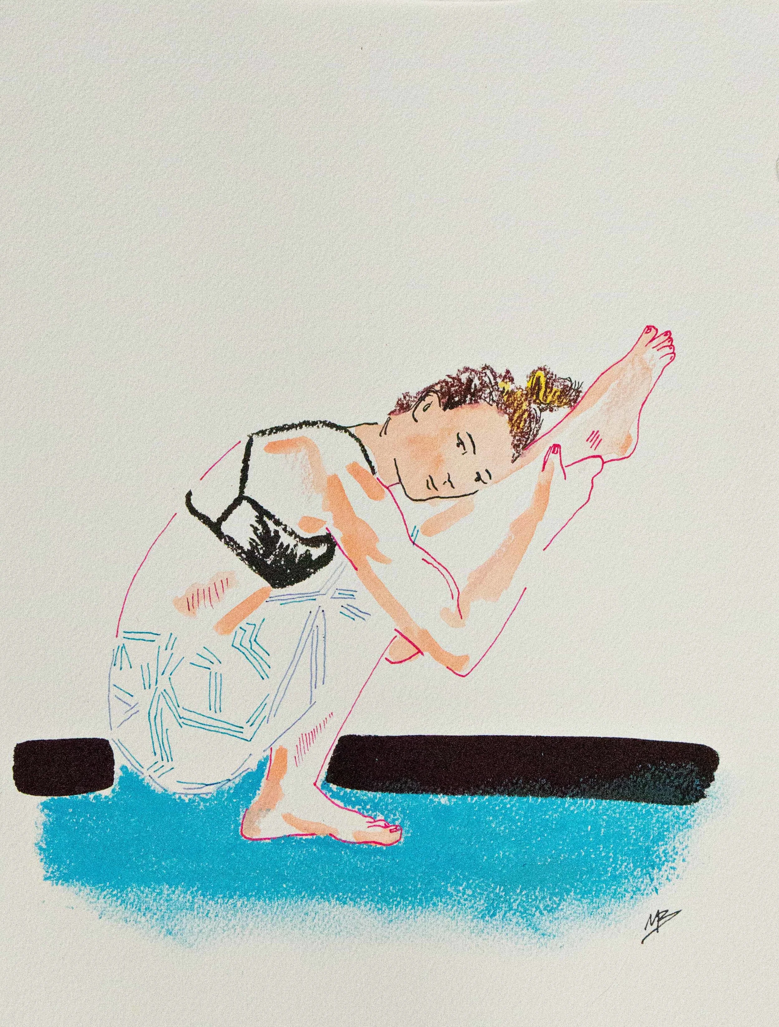“My husband gifted this beautiful yoga portrait as a Christmas gift. I was ecstatic! This pose reminds me of how still and calm I am while I’m on my mat. Mike’s style and grace as an artist captured it perfectly."